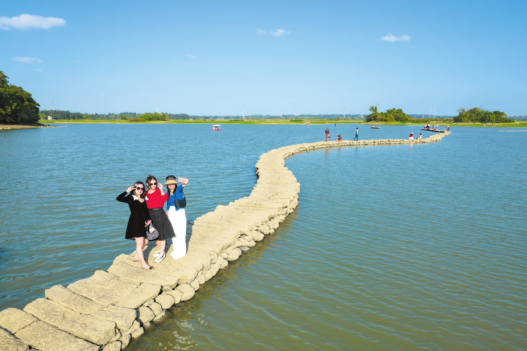 琼山区龙塘镇国仓村美味河边蛇桥是近来的网红打卡点。这座桥是明朝时期因兴修水利和治水而建,由火山石垒成,其整体状似蛇形,故称为“蛇桥”,又因地处美味山、美味河而被称为“美味桥”。每年1月以后至端午节期间,蛇桥会因水位降低而出现,其余数月则没于水中。