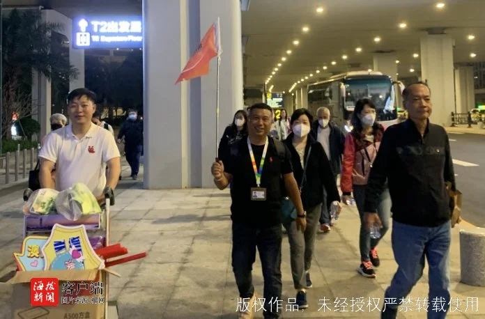 3月17日23时,从澳门至海口的HU7936航班落地美兰国际机场T2航站楼,这是海口⇋澳门航线恢复后第一批从澳门来海南的游客。这对海南加快自贸港建设,全力推进海南旅游国际客运航线的进程起到了积极推进作用。“沉寂三年的跨境旅游市场终于复苏,对海南旅游市场经济具有非常好的推动作用。”海南优选国际旅行社导游员韩炬光告诉国际旅游岛商报记者,他从事导游行业已有十余年,带过不少跨境旅游团队,这一次他很荣幸带领海口⇋澳门航线恢复后第一批从澳门来海南的游客,他将向澳门同胞好好介绍海南旅游特色及独特魅力。