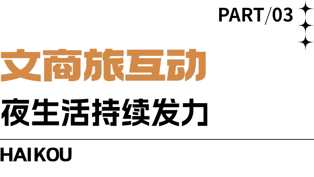 在促进文旅深度融合,“点亮”夜经济方面,打好文旅牌、完善夜游体系,还需如何发力?海口市旅游和文化广电体育局相关负责人表示,“夜文旅”带活“夜经济”,“夜经济”促进“夜文旅”。新产品、新业态、新玩法不仅激活了海口文旅市场,也拓宽了城市休闲消费空间。从空间到时间,夜间旅游不再只是白天线路的补充,完善旅游基础设施建设、提升旅游服务水平、强化旅游特色传播,让“爆火”变“长虹”,从而推动旅游消费延展升级,不仅为市民游客带来了全新体验,也为椰城海口“夜经济”消费持续发力。