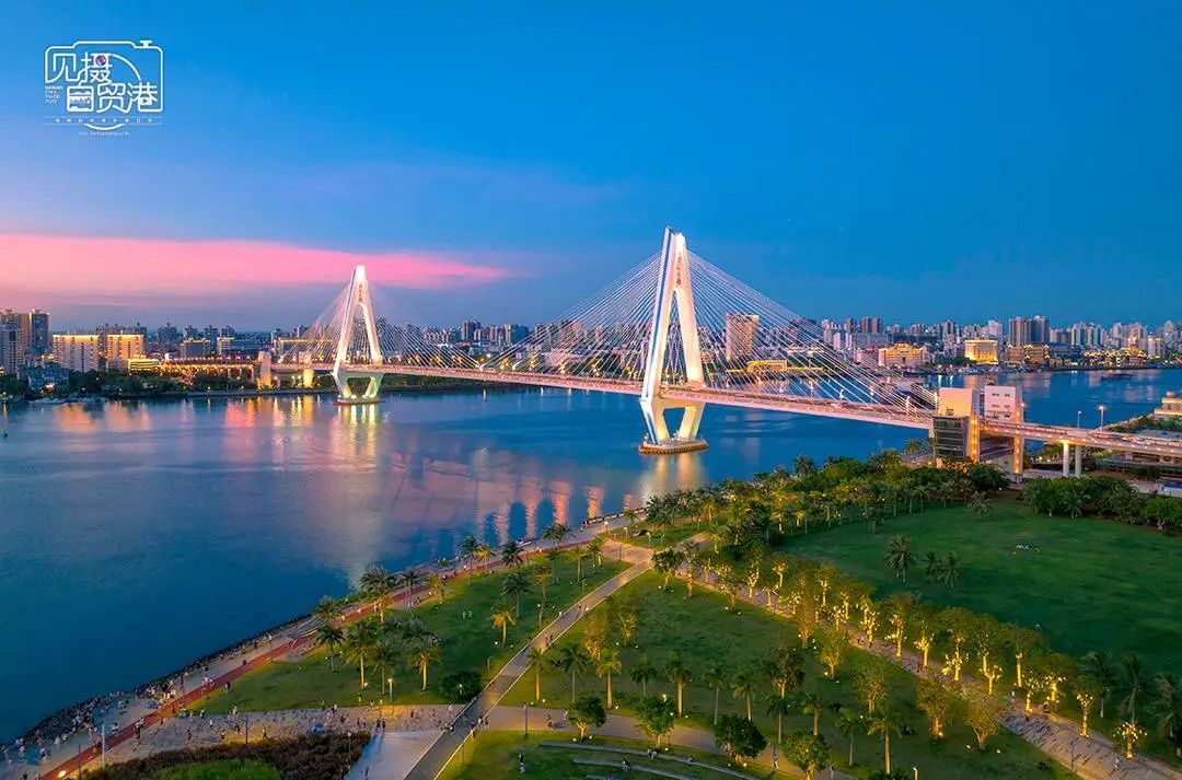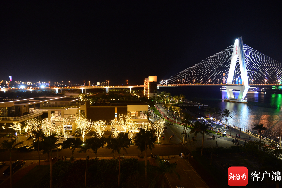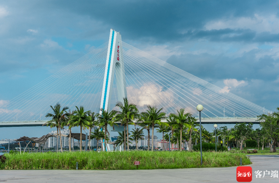 海口湾,椰树与世纪大桥相互映衬,别有一番椰城韵味。新海南客户端记者 李昊 摄