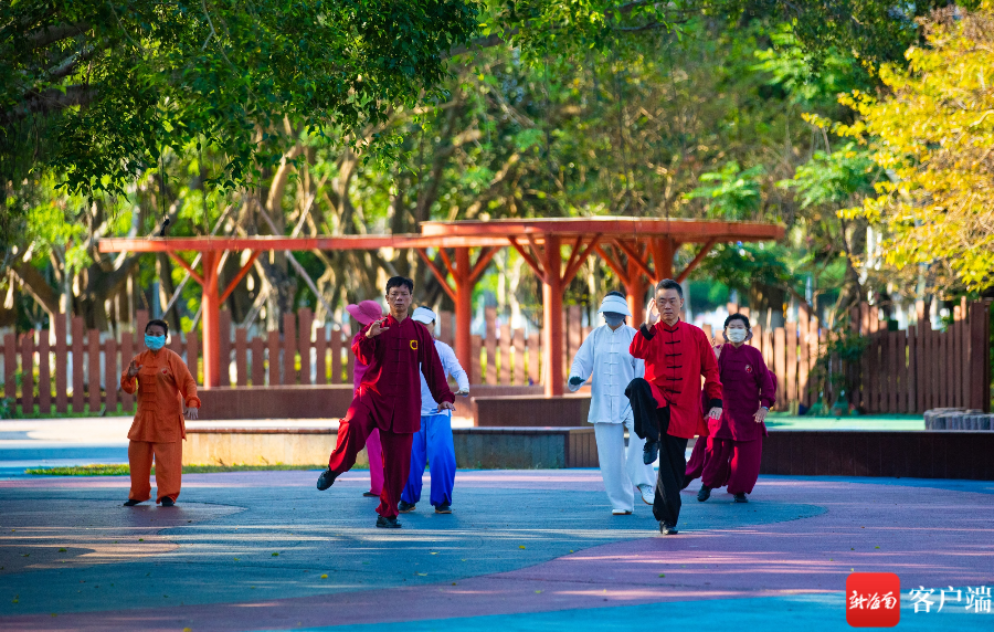 人们在万绿园晨练 新海南客户端记者 李昊 摄