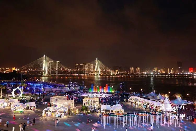 伴着海浪和海风,喷泉随着音乐律动,或闲情肆意漫步、或约会闲谈略饮,华彩·海口湾广场市集,尽显滨海城市特色。在这里海风吹拂脸颊,聆听一曲爵士乐,解锁闲适的港湾夜生活。