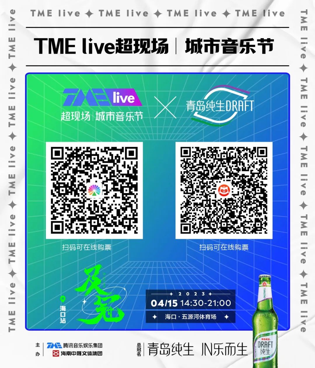 青岛纯生x TME Live 超现场|城市音乐节-及冠海口站门票现已开售!