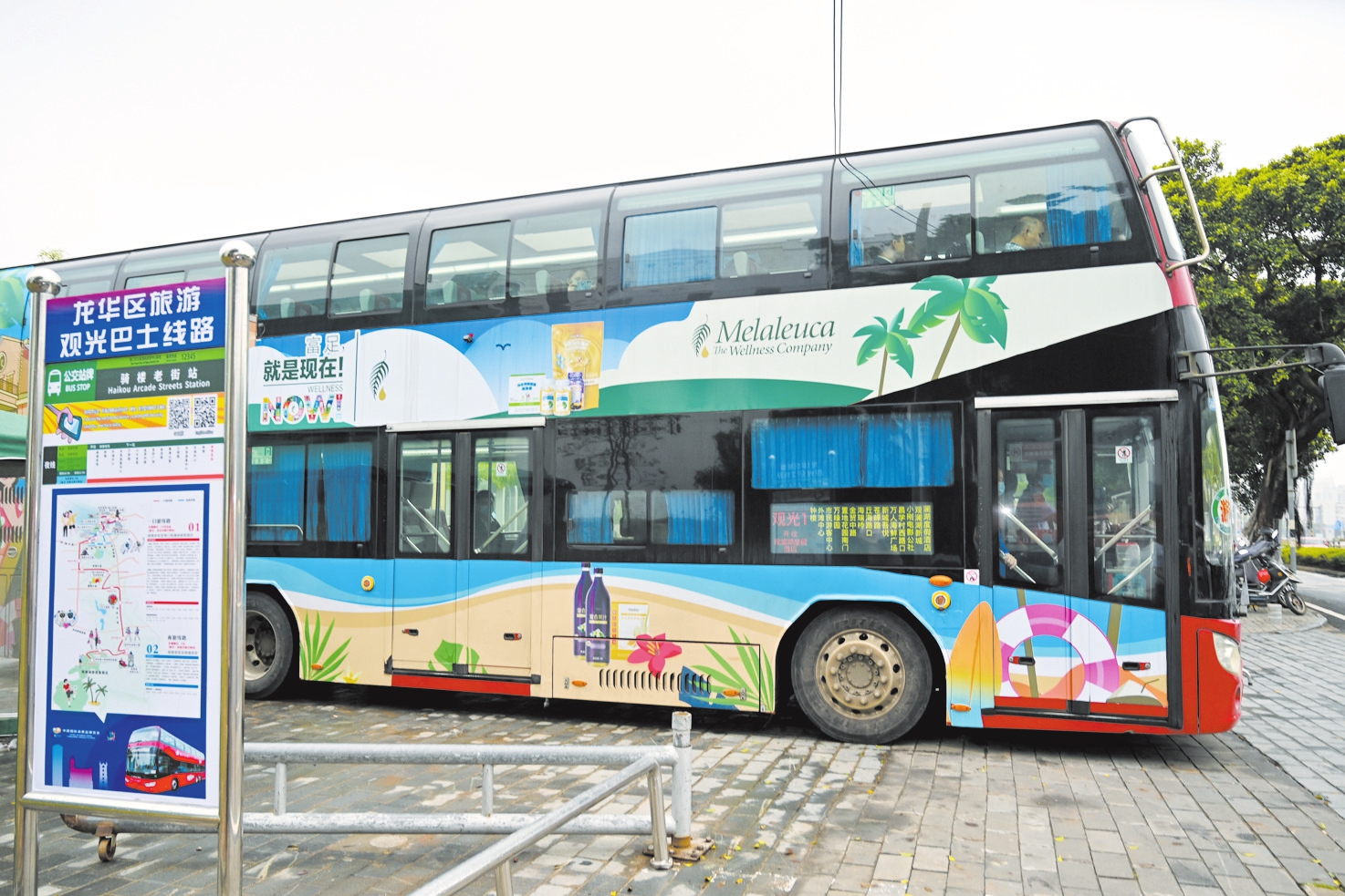 ②4月9日,市民游客乘坐龙华旅游观光巴士从骑楼老街站出发畅游椰城。 本报记者 石中华 摄