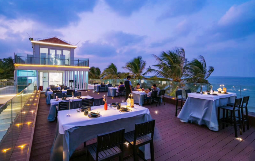 位于海口西海岸假日海滩的欢乐海岸美食联盟,就是一个超级大的餐饮集聚地,有海南家宴、潮汕家宴、海天一色、老广州茶点、潮牛火锅、宵夜大排档等六大餐饮门店。包房里可以直接看到海边,景观很不错。不管是包间,还是庭院,在这样的环境下就餐,是视觉、味觉双重享受。