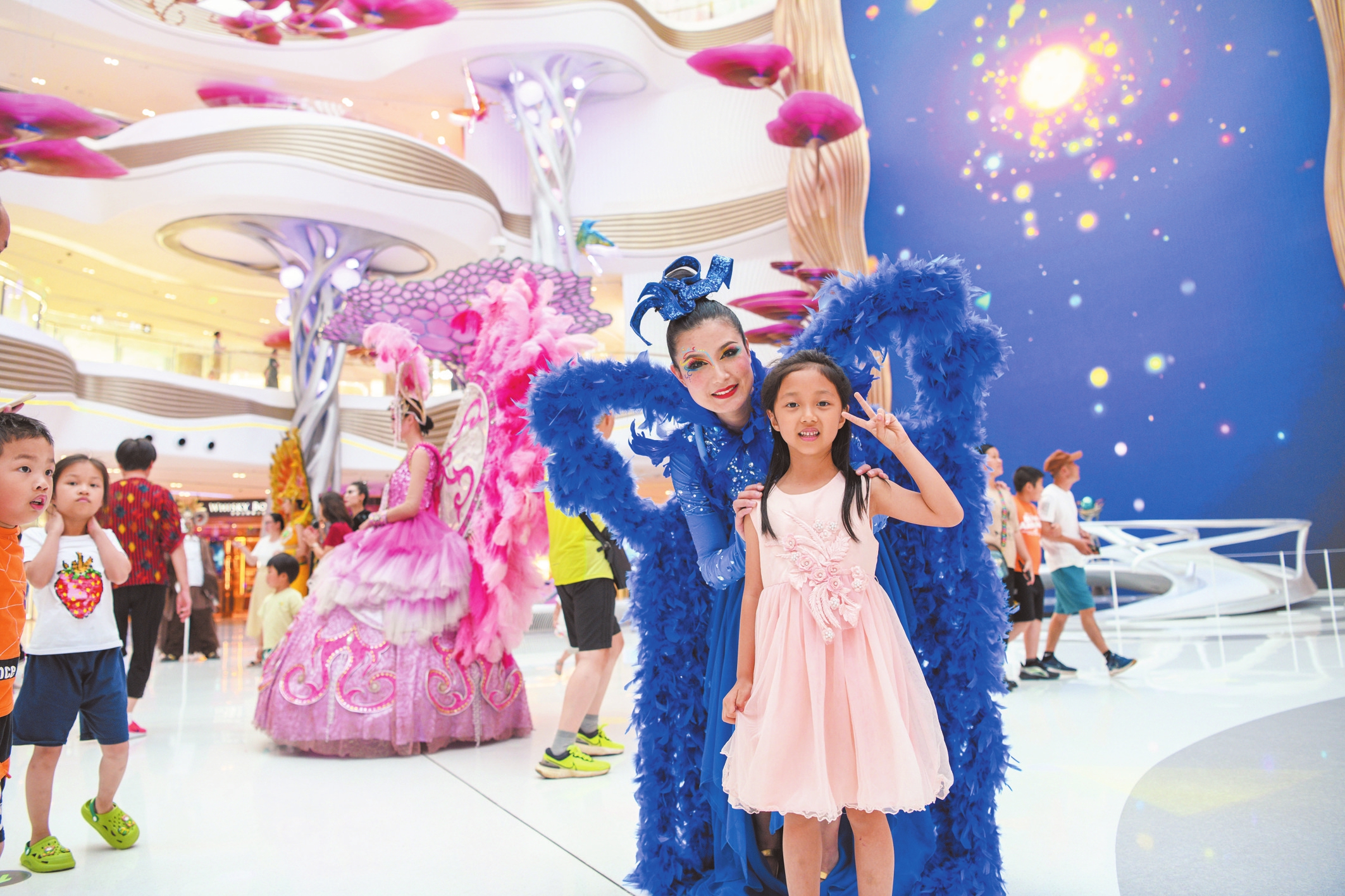 ▲5月3日,cdf海口国际免税城天际秘林的主题演出,吸引不少顾客前来观看。