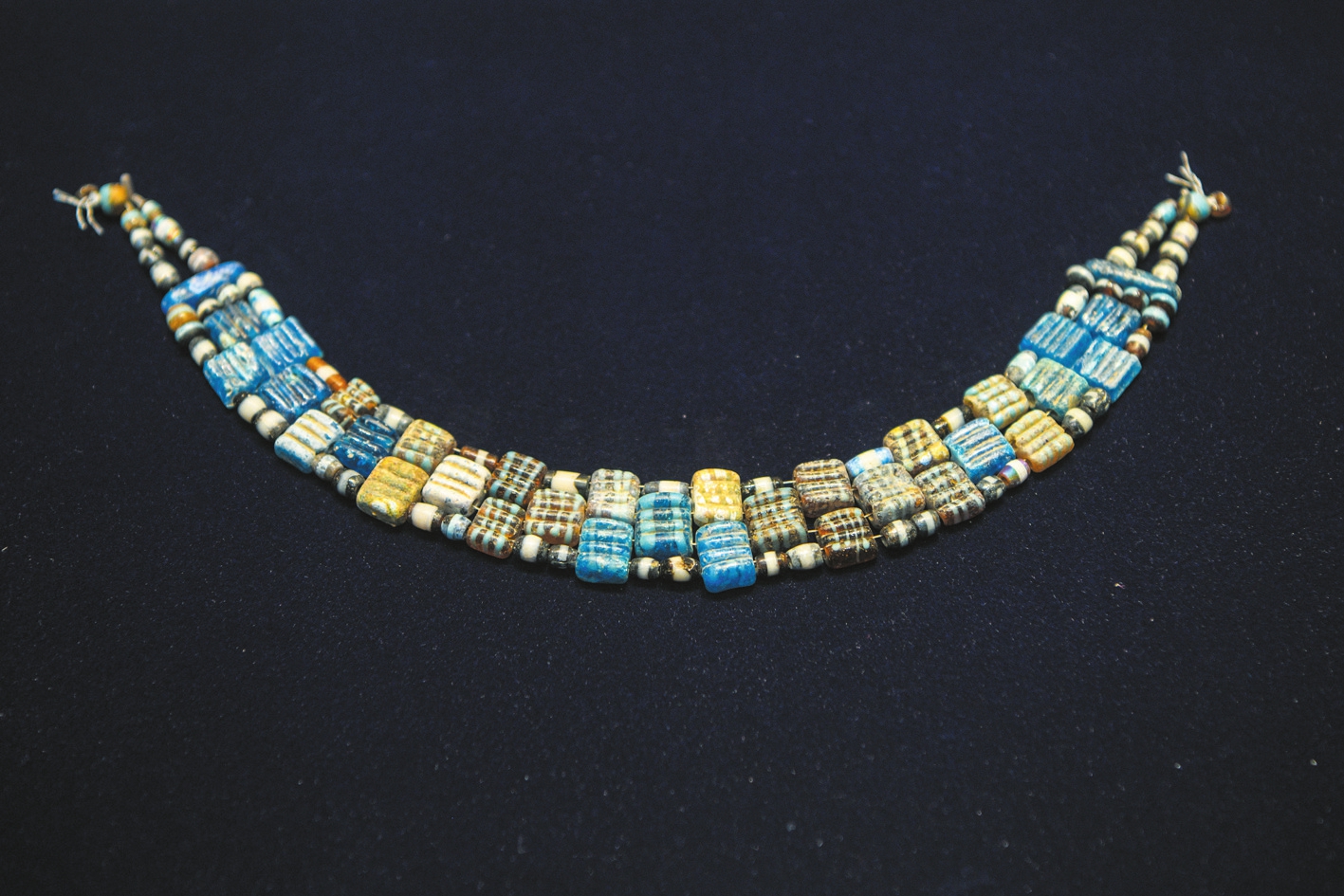 玻璃发展的几个主要阶段的代表作在“瑠光异彩——平山郁夫藏丝路古玻璃精选”均有展现,可以称作是一部生动的玻璃简史。展厅中就有公元前16世纪的美索不达米亚的玻璃珠饰、埃及玻璃、腓尼基玻璃、罗马玻璃、伊朗萨珊玻璃、伊斯兰玻璃等,展品时间跨度大,历史跨度长达2800年,涵盖古埃及、两河流域、地中海、西亚和中亚等地域,品类包括首饰、饮食等多种器物和建筑材料。