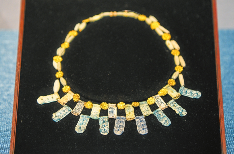 此外,公元5—7世纪伊朗的圆形磨花碗、公元前1—公元1世纪意大利的金带装饰瓶、公元前6—前4世纪东地中海地区的单柄壶、公元前6—前5世纪黎巴嫩或迦太基人头形挂坠项链等玻璃制品,这些古老的艺术珍品焕发着无穷魅力,展示了丝路沿线各民族的智慧和创造力。