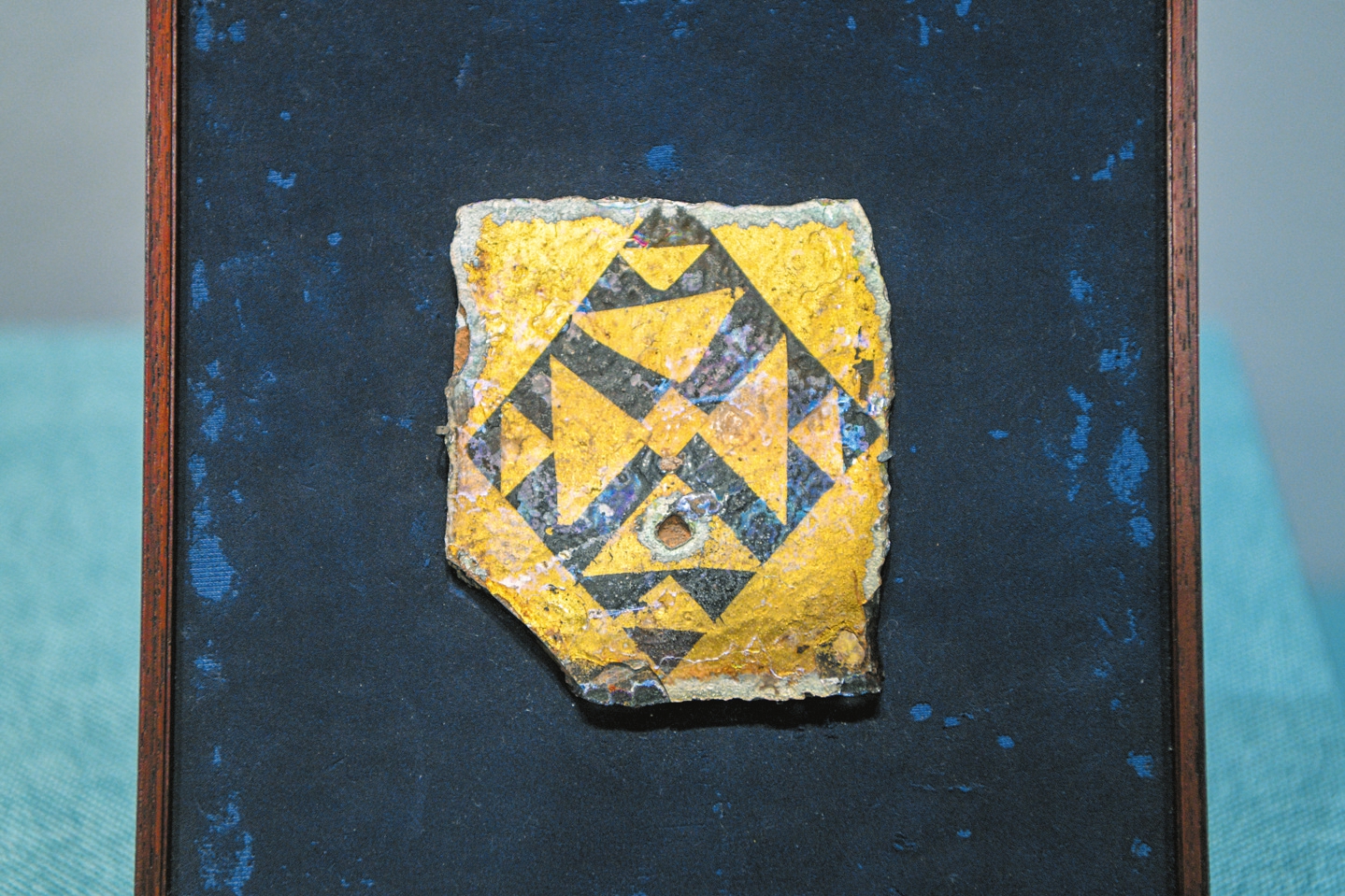 展厅内显眼处的伊什塔尔之星挂坠,来自公元前14—前13世纪的北美索不达米亚。该图案表现的是带有八条光芒的金星,每条光芒之间均匀分布着圆点装饰,该图案是古巴比伦自然与丰收女神伊什塔尔的象征,伊什塔尔同时也是主司爱情、生育及战争的女神,井与金星有关,因此伊什塔尔之星也象征着金星。