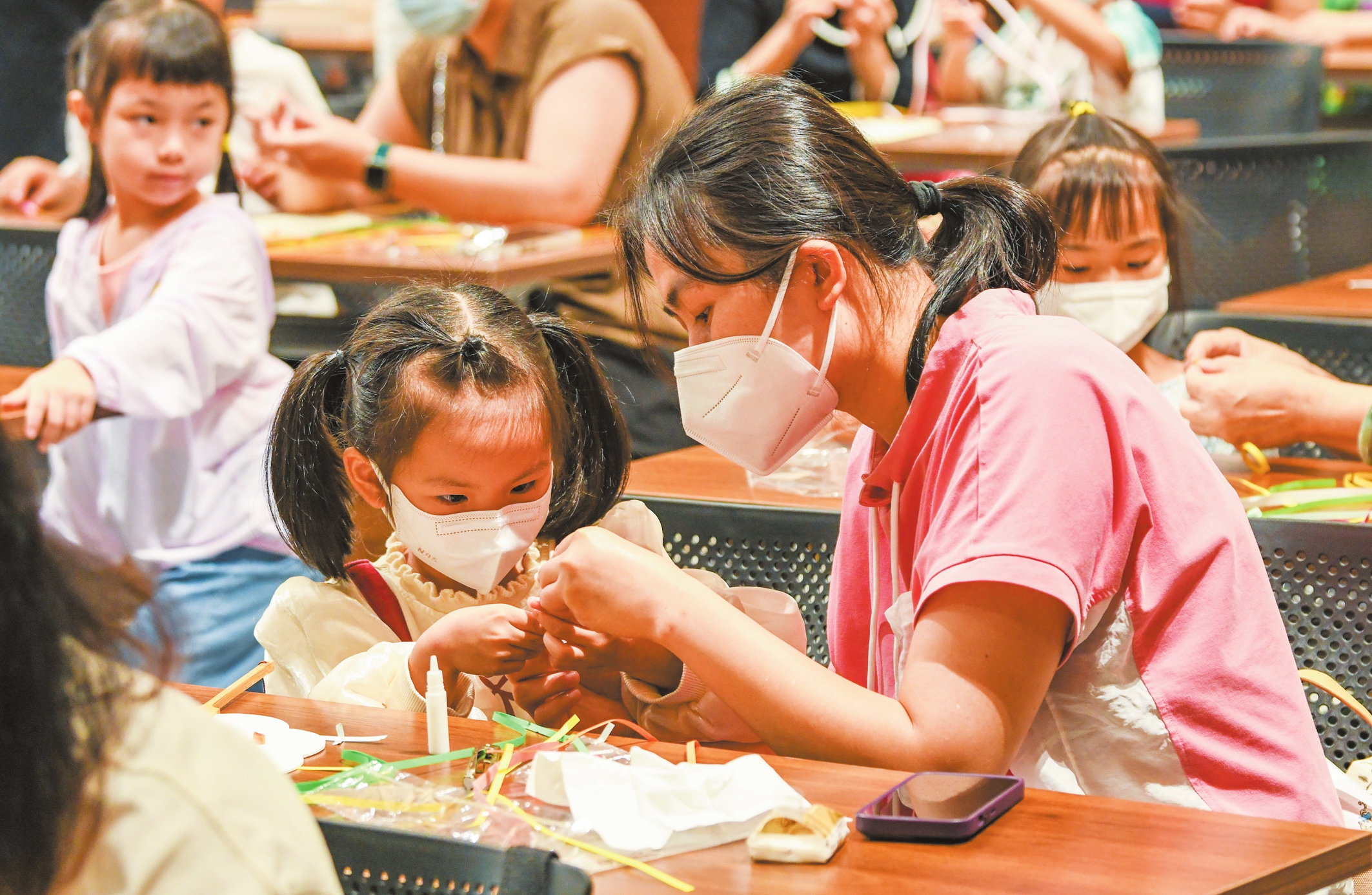 5月14日,母亲节当日,海口海瑞文化公园举办母亲节爱“廉”奇妙之旅活动,30余组家庭沉浸在DIY创意纸扇手工活动的乐趣中。 本报记者 康登淋 摄