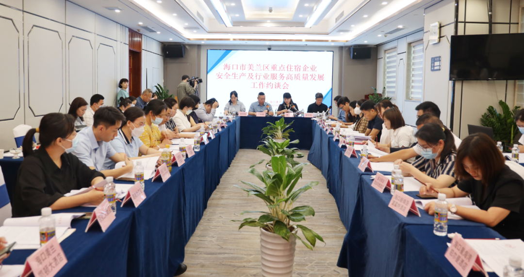 在随后召开的美兰重点酒店“心连心”交流会上,开展了党的二十大精神学习传达、安全生产及行业服务高质量发展工作约谈、优化营商环境及诚信建设工作研讨、住宿行业“旺工淡学”人才培养工作动员等活动。