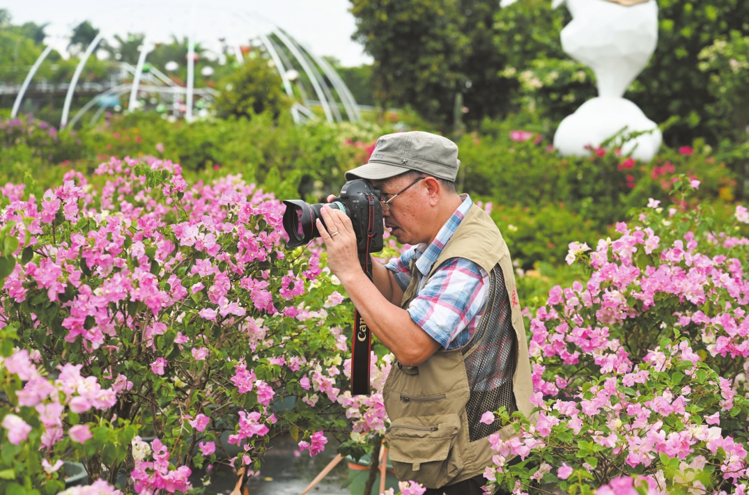 摄影师在琼山区红旗镇三角梅共享农庄创作。本报记者 黄一冰 摄
