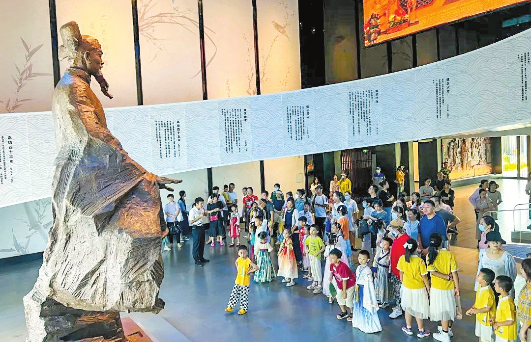 6月22日,海瑞文化公园举办了“国潮故事会”端午亲子研学活动。图为小朋友们身穿汉服,聆听海瑞故事。本报记者 康登淋 摄