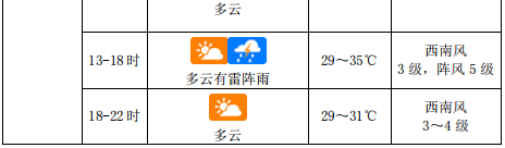 预计,6月29日~6月30日,多云,局地午后有雷阵雨;7月1日~7月2日,受偏南气流影响,多云,午后有雷阵雨。