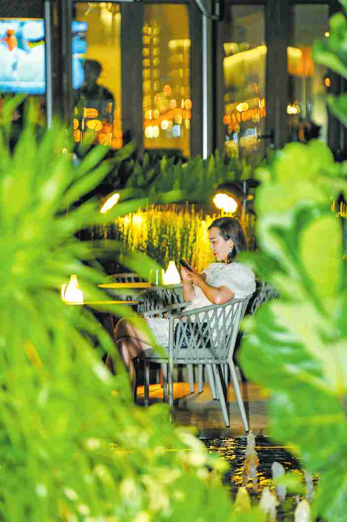 众多市民游客到海口湾外滩休闲、用餐。本报记者 康登淋 摄
