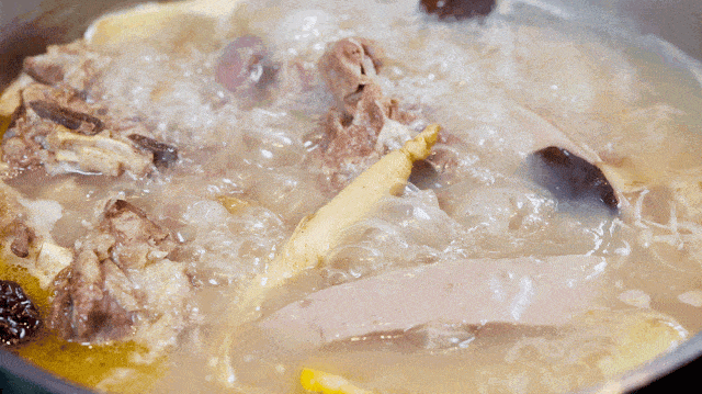 便是羊汤店家用大锅煮熟