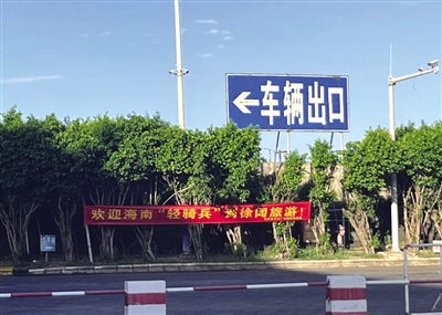 19时左右,记者骑行到海安新港,入口处有不少大型货车在排队等待。由于现场未设电动车专用道,因此只能骑电动车在大货车和轿车间穿行,存在一定安全隐患。记者看到,港口摆放着一块写着“海南轻骑兵服务站”字样的牌子,上面有港口服务热线,现场还提供一份徐闻旅游手册和一份手绘的徐闻地图。