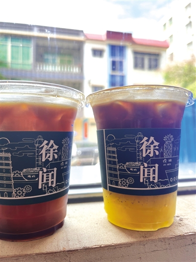 咖啡店老板是位“95后”,他告诉记者,这家店由破旧老屋改造而成,店名即源于此。饮料杯套上除了有“徐闻”二字,还印有菠萝、轮船的简笔画,具有徐闻特色。
