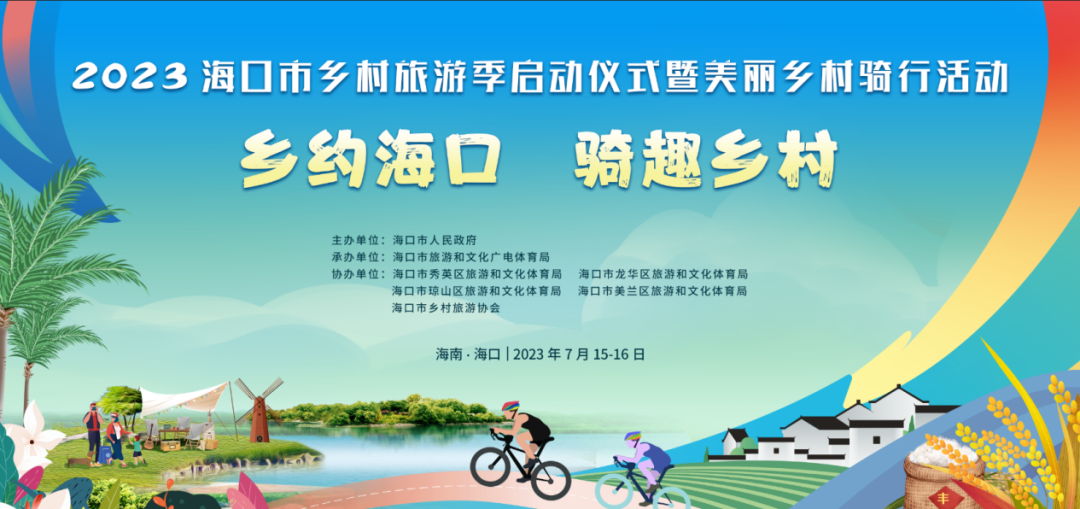 晴日暖风翻稻浪,绿阴幽草映夏花。为了不断提升海口乡村旅游吸引力和影响力,推动文化、体育、旅游赋能经济、激发活力,助力海口旅游高质量发展,我市将于2023年7月15日-7月16日举办“听党话、跟党走,感党恩”2023年海口市乡村旅游季启动仪式暨美丽乡村骑行活动。此次活动以“乡约海口 骑趣乡村”为主题,涵盖美丽乡村市集展示、乡村旅游娱乐项目体验、一“骑”趣乡村骑行等活动内容,旨在展示海口乡村秀美风光、品尝乡村特色美食、体验乡村娱乐项目、展现乡村传统工艺品,广邀市民游客走进乡村,到自然乡野中去、到乡村体验中去,持续带热乡村休闲旅游市场,有效带动农户增收,助力乡村振兴。