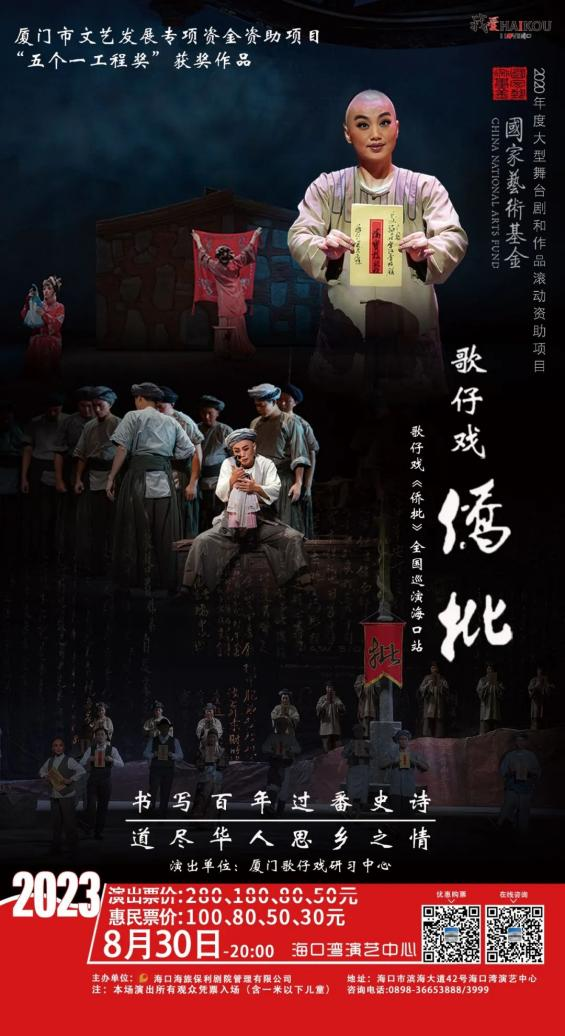国家艺术基金、“五个一工程奖”获奖剧目,作为全国戏曲“百戏盛典”的开幕大戏,两次入选国家艺术基金资助项目,侨批是令无数闽南的华侨华人们魂牵梦绕的文化符号和乡愁记忆,这是它首次被搬上歌仔戏舞台。将闽南人的爱、义、恩、情融入戏中,写就了一部闽南人精神力量的形象赞歌。