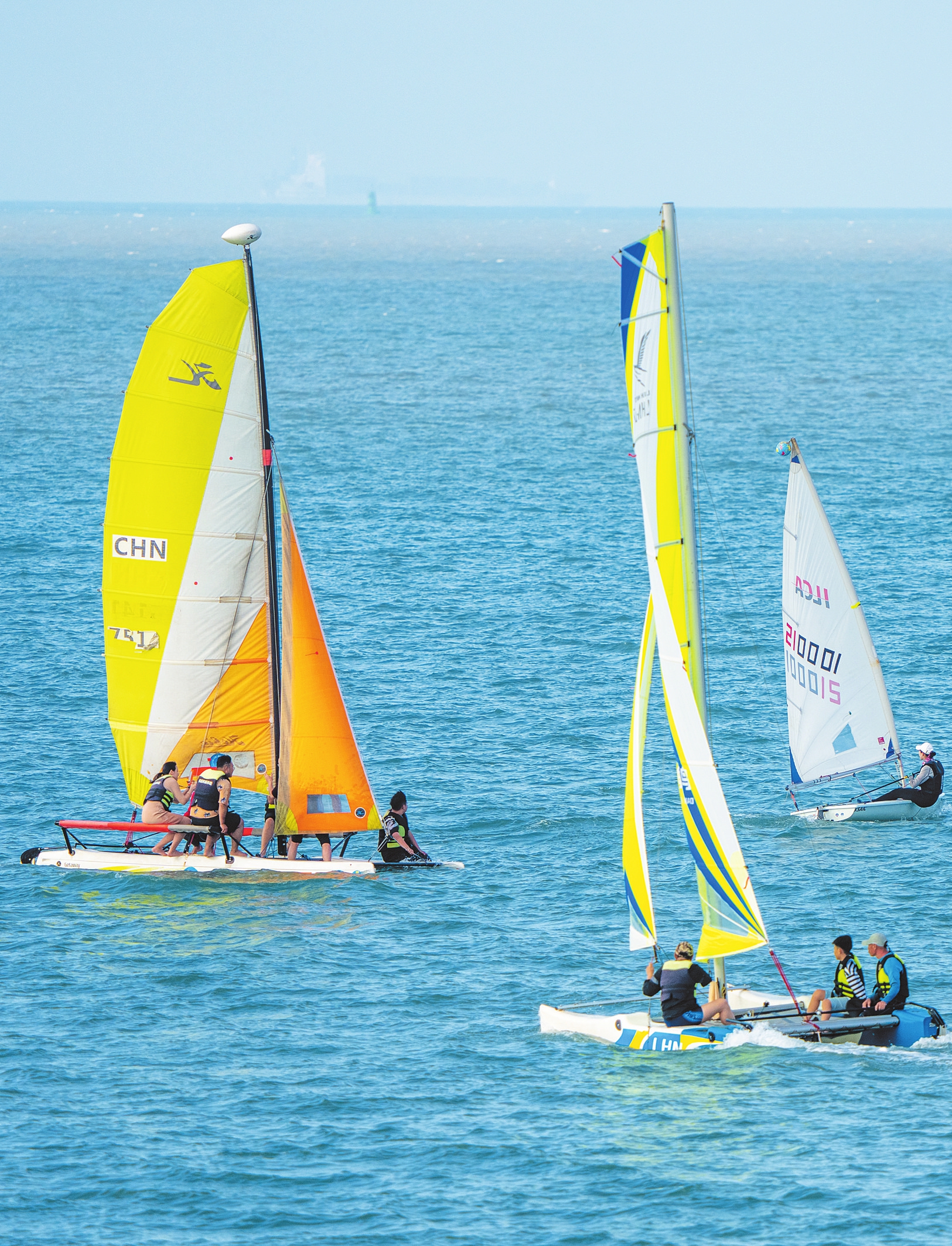 ④水上运动历来受到岛外游客的青睐。这是市民游客在海口西秀海滩体验水上运动。 本报记者 苏弼坤 摄