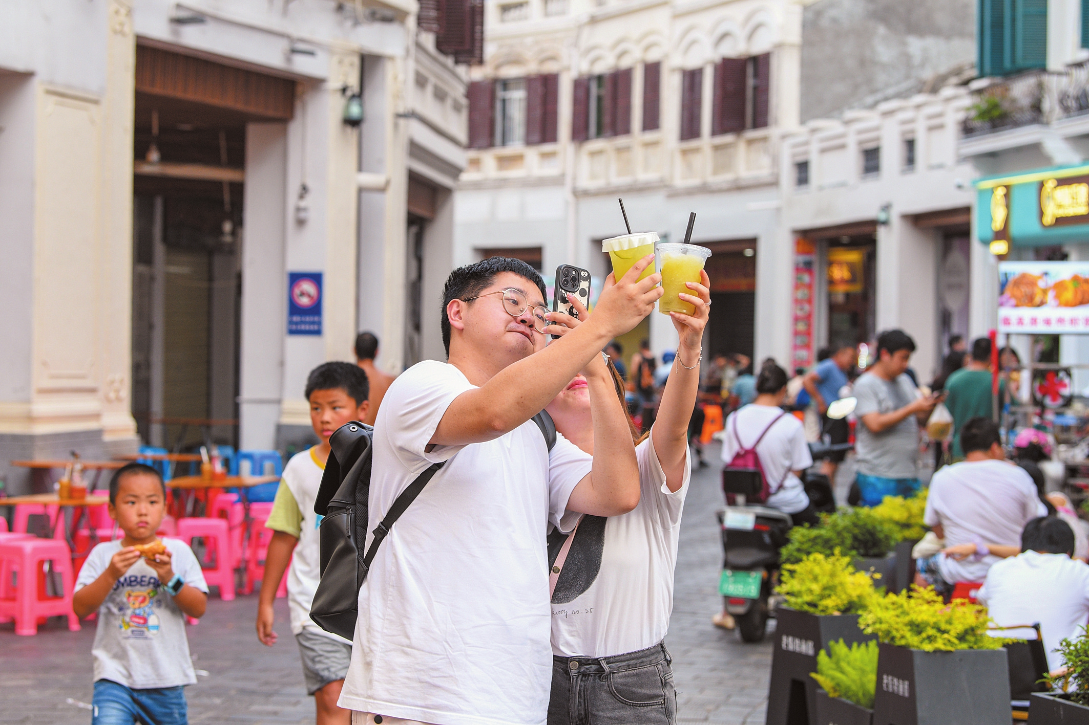 “每逢节假日,老街人气十足,这个暑期尤其热闹。”8月4日下午,骑楼老街某商铺的负责人介绍,进入暑期以来,前来老街打卡的游客络绎不绝,大家来此品本土特色美食、赏南洋风格建筑,捕获视觉和味觉的“双重享受”。