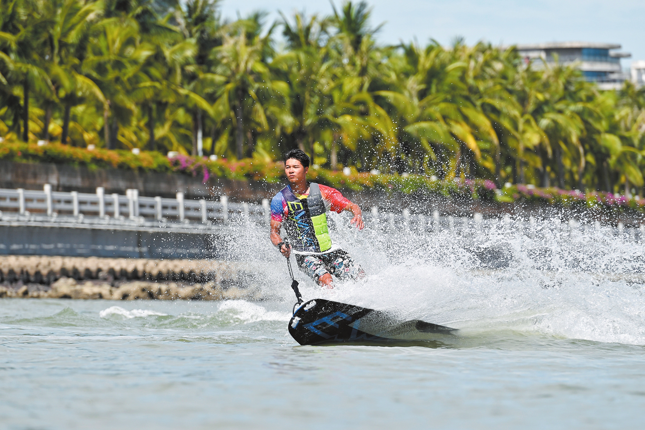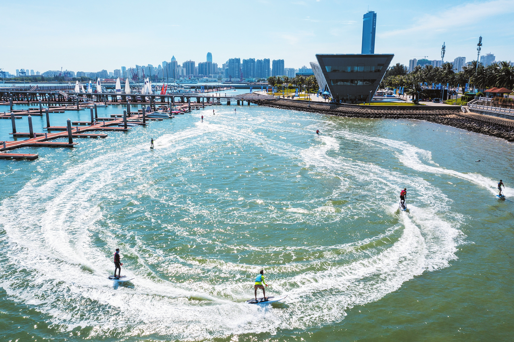 8月5日至6日,海口市国家帆船基地公共码头热闹非凡,2023海口杯帆船赛在这里举办。比赛中,电动冲浪板表演精彩纷呈,选手们乘风破浪高高跃起,在海面上划出美妙的弧线,激情澎湃的海上运动向市民游客展示着海口的城市魅力。
