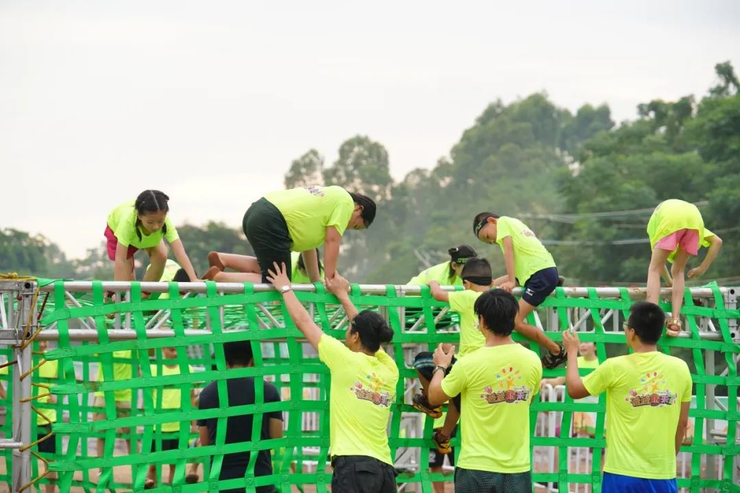 赛道沿线尤其是障碍关卡处,均安排有裁判、志愿者等工作人员,会指导参赛小选手按照规则要求完成障碍挑战或接受失败惩罚,亲子组父母还可以辅助完成相关挑战。