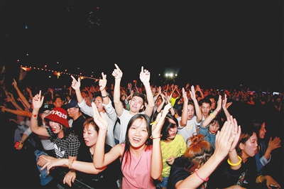 2019第四届海口蓝色国际电子音乐节现场,观众沉浸在音乐享受中。
