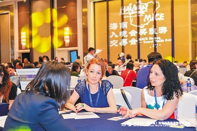 2019海南入境会奖旅游交易会现场,国际买家正在洽谈。