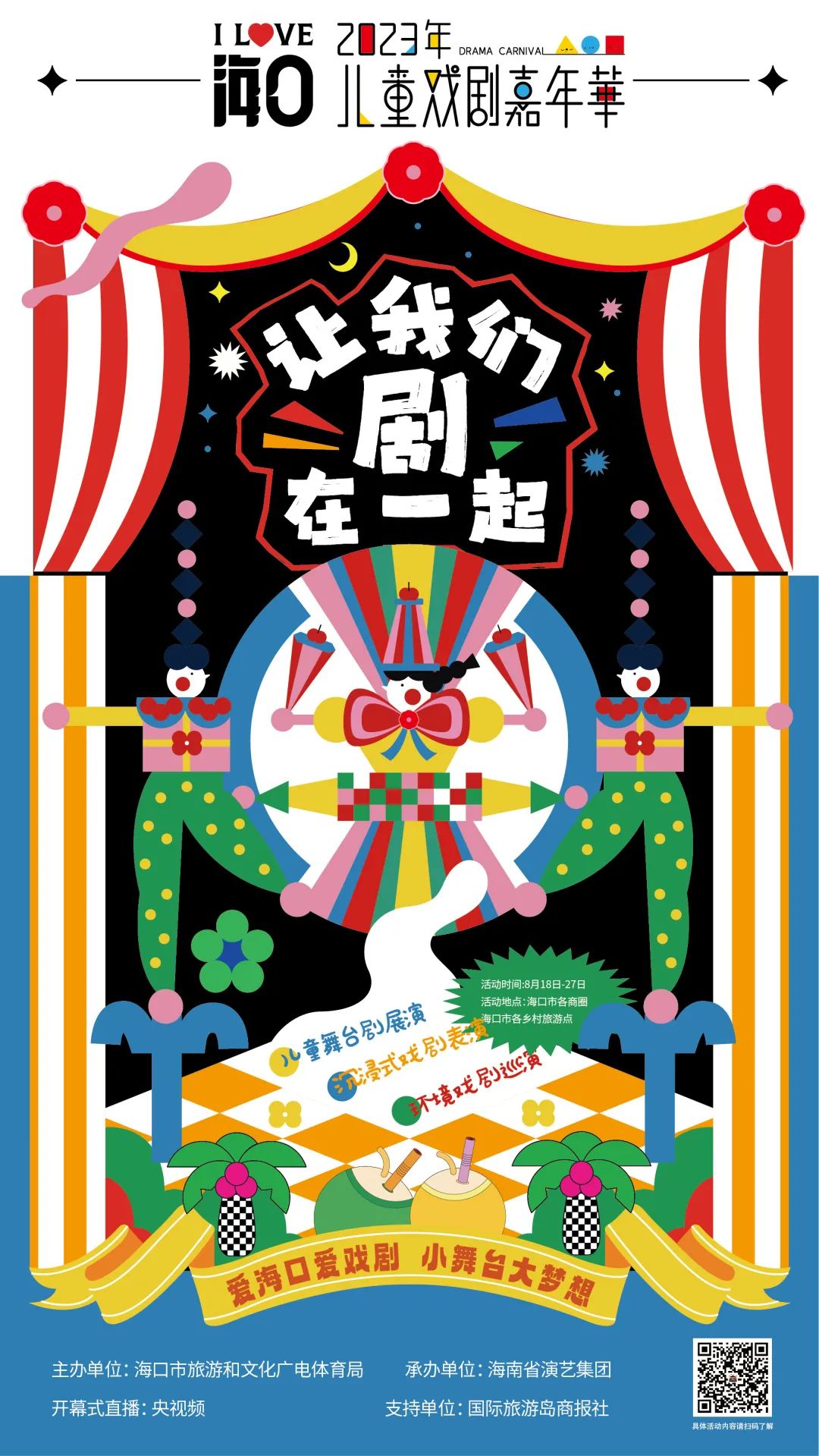 为提升2023年海口少年儿童暑期生活新体验,助力海口旅游经济发展,推动文旅融合,由海口市旅游和文化广电体育局主办,海南省演艺集团承办的“让我们剧在一起”2023年海口儿童戏剧嘉年华活动,届时央视主持人月亮姐姐将作为开幕式主持人,带领市民及游客朋友领略海口城市之美。