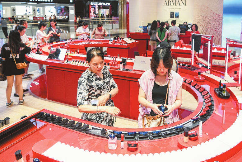 在cdf海口国际免税城,市民游客正在挑选免税商品。 本报记者 苏弼坤 摄