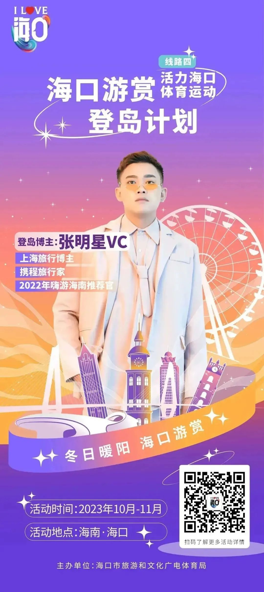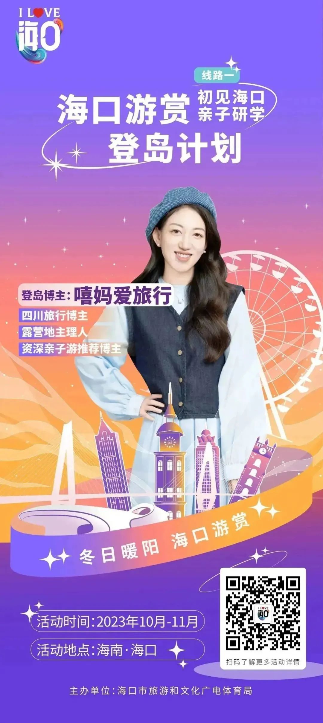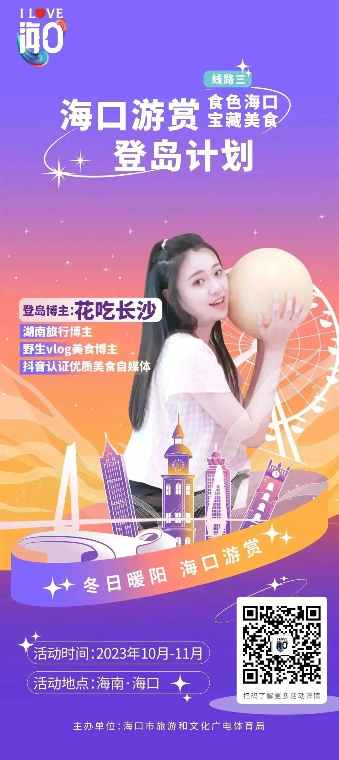 @全国朋友以及所有本地游客朋友们,拿起手机,在抖音、新浪微博、小红书三大社交平台上,用镜头、文字推荐分享你心目中的海口地标建筑、历史人文、体育运动、特色美食等城市旅游特色,并带#海口游赏话题发布,就有机会获得万元大礼包!