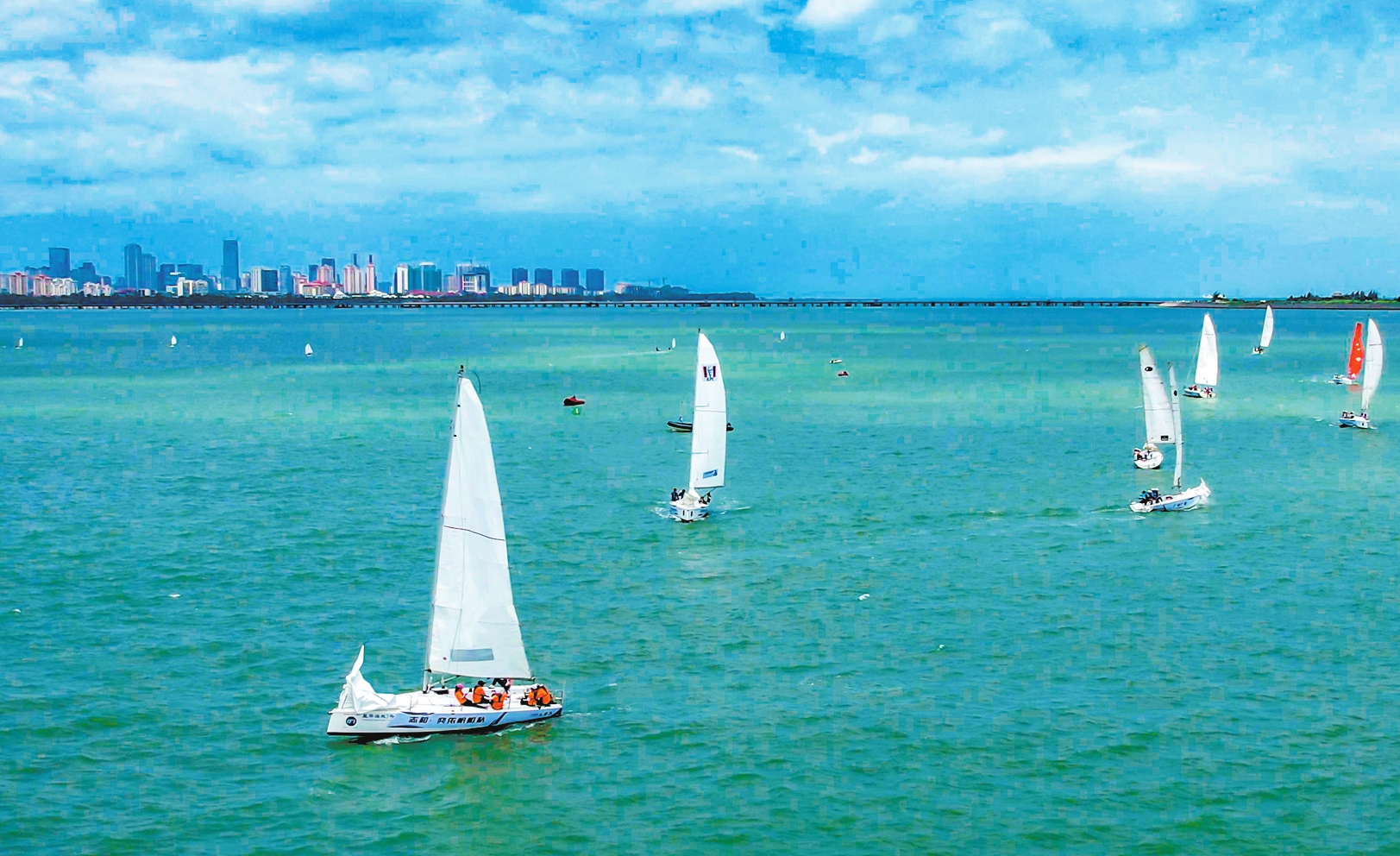 《海南自由贸易港建设总体方案》指出,大力发展旅游业,推动旅游和体育深度融合。当前,帆船帆板运动已成为海口发展水上运动、推动体育旅游融合的新抓手。2023“海口杯”帆船赛系列赛事期间,配套举行嘉年华活动,以展览+市集形式,设置民族饰品、原创手作、文创手办、特色小吃等展位,并有乐队表演、趣味游戏、音乐狂欢、露天电影等体验,带动相关产业发展。鲁海燕说,系列赛事有效推广了海口海洋旅游资源,以“赛事+旅游”模式丰富旅游消费新业态,助力海南建设国家体育旅游示范区和国际旅游消费中心。