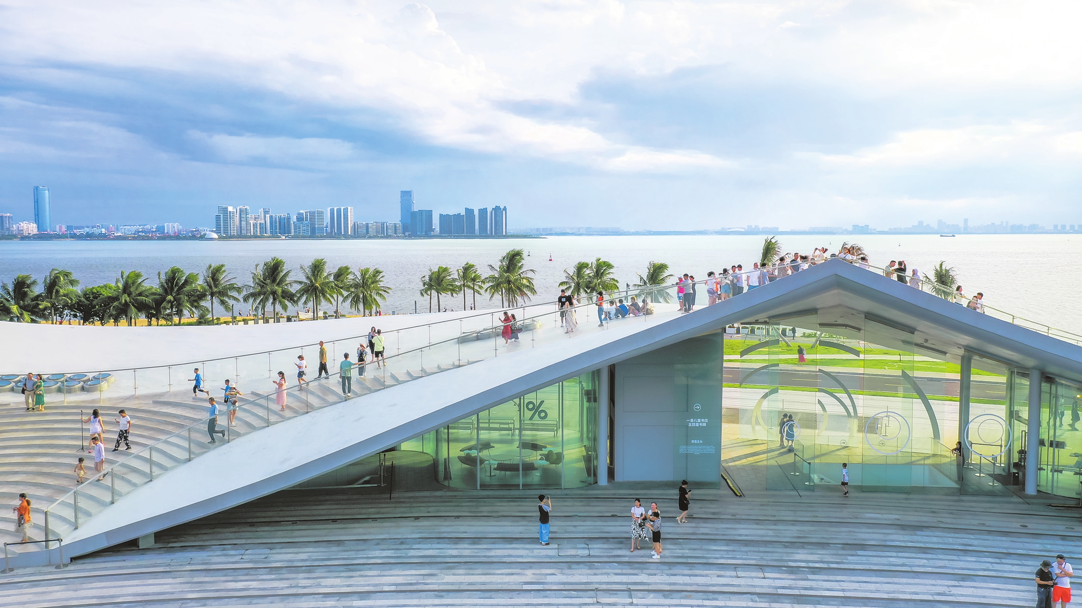 海口云洞图书馆一体成型的白色建筑像多维的时空隧道,连接城市与海岸、现实与想象,被誉为“海岸线上引领潮流的地标建筑”。 本报记者 杨鹤 摄
