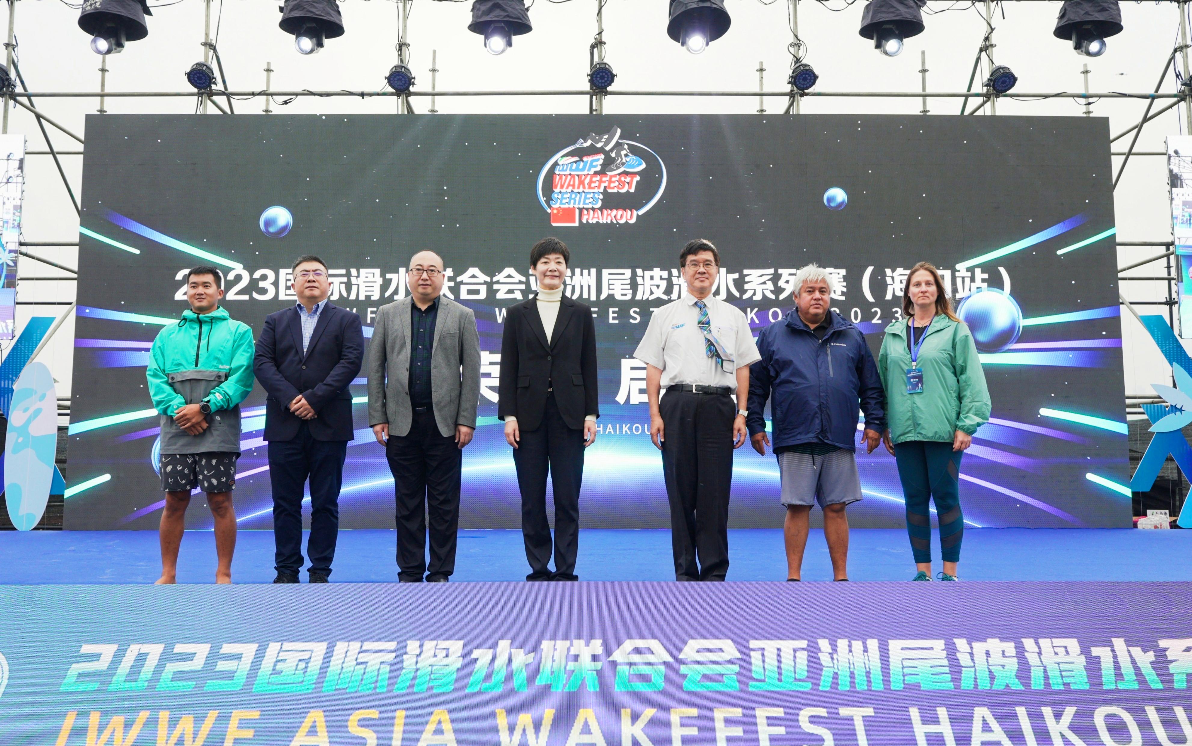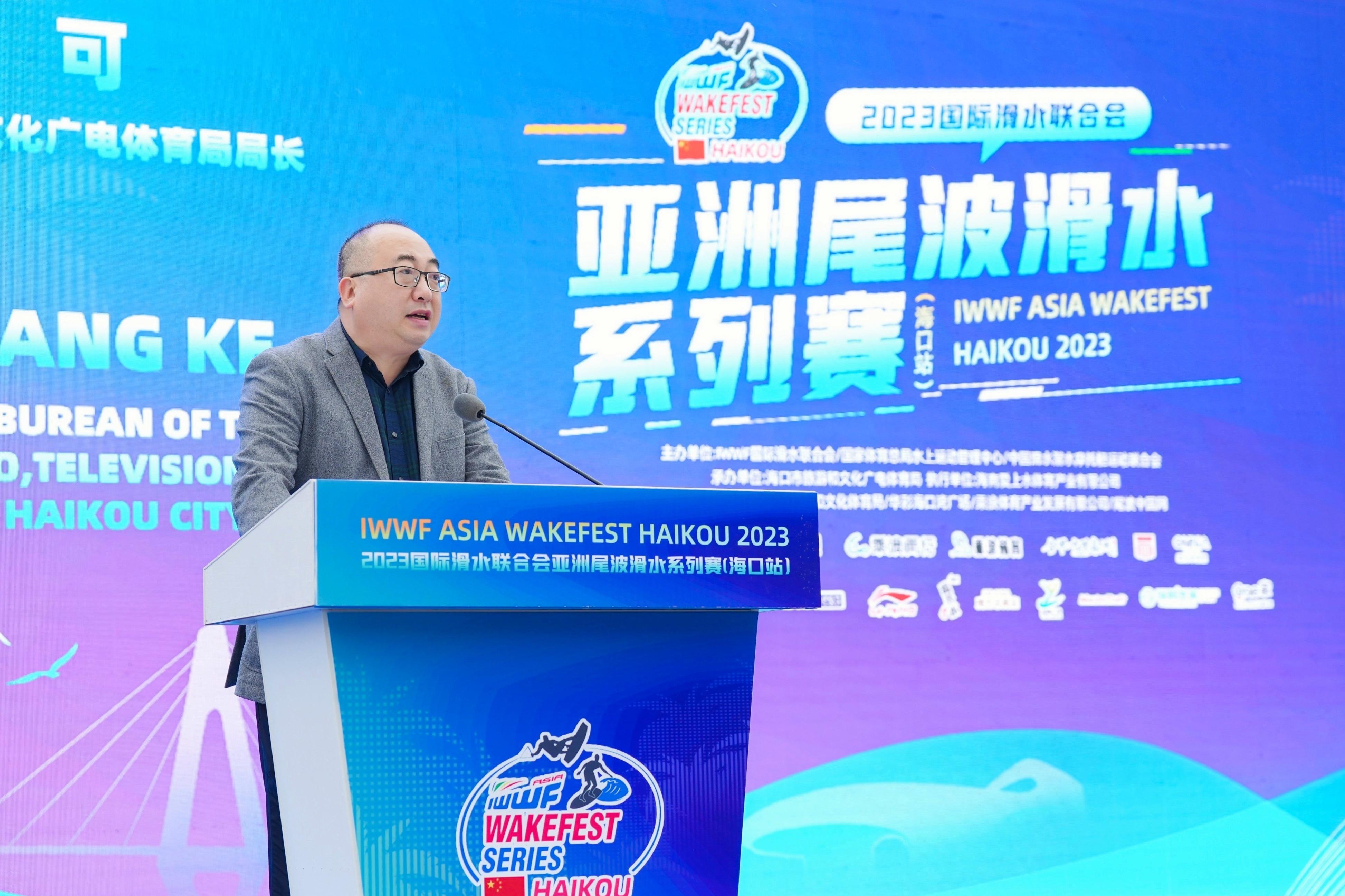 “凤舞龙腾碧水间,波花流连华彩湾。”王可局长以海口滨海水域文化特色文旅资源,结合推进“文旅+地标”的独特体育产业发展思路,阐述描绘滨海城市发展水上运动的禀赋与优势;强调滨海城市结合地标性建筑举办国际赛事的重要性,也借此机会邀请各位来宾及参与人群共同打造现代化、国际化的水上运动聚集地,也希望这次比赛给大家带来更好的体验和感受,能够充分体验海口的魅力。