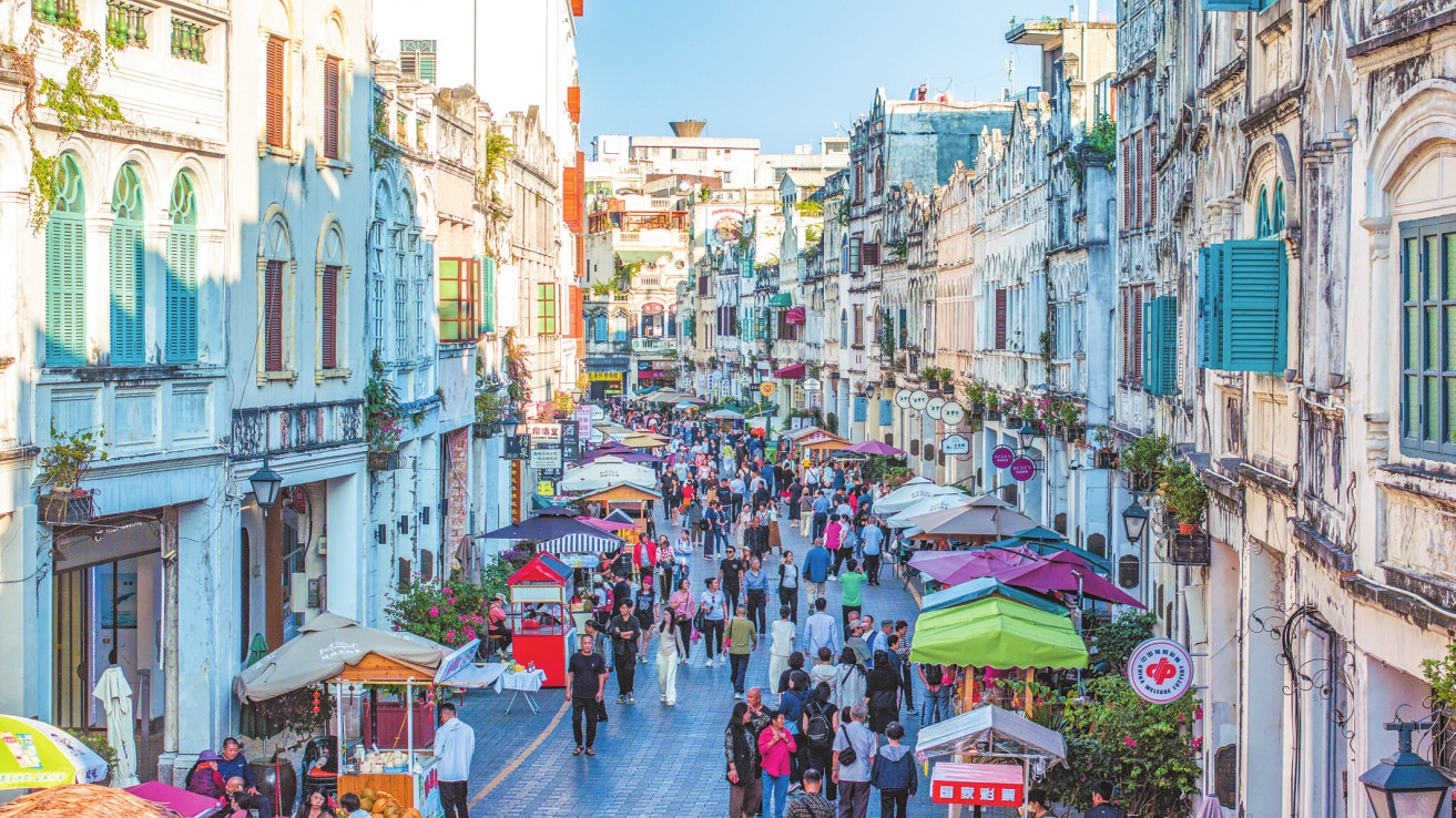 12月7日,骑楼老街游人如织。 本报记者 杨鹤 摄