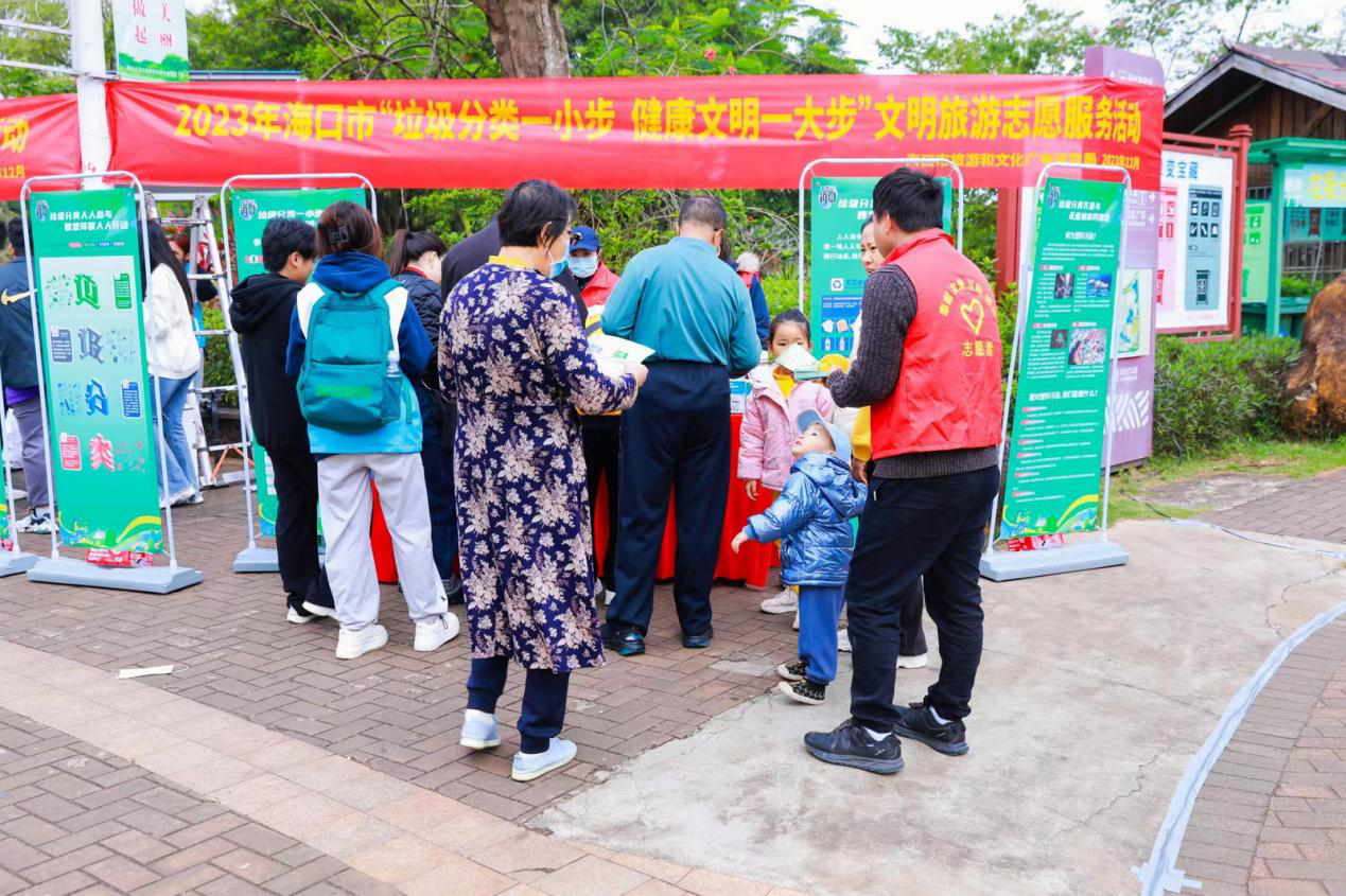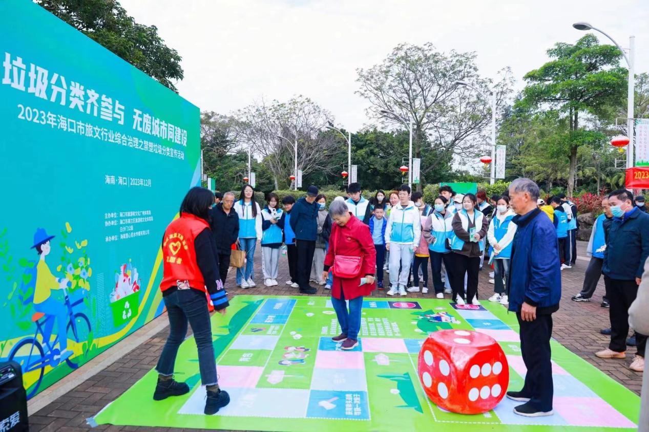 12月24日,由海口市旅文局主办的“垃圾分类齐参与,无废城市同建设”2023年海口市旅文行业综合治理主题宣传活动在白沙门公园顺利举行,活动围绕传播文明旅游、生态环保理念,科普垃圾分类、禁塑、“无废城市”建设知识等方面展开,通过走进旅文从业人员的身边,走近市民游客的身边,双管齐下,采取趣味互动、现场宣讲等方式,大力倡导文明旅游、生态环保理念,普及垃圾分类、禁塑、“无废城市”建设政策法规和科学知识,全面提高旅文行业从业人员和广大市民游客绿色环保意识,营造更加可持续发展的旅文环境。