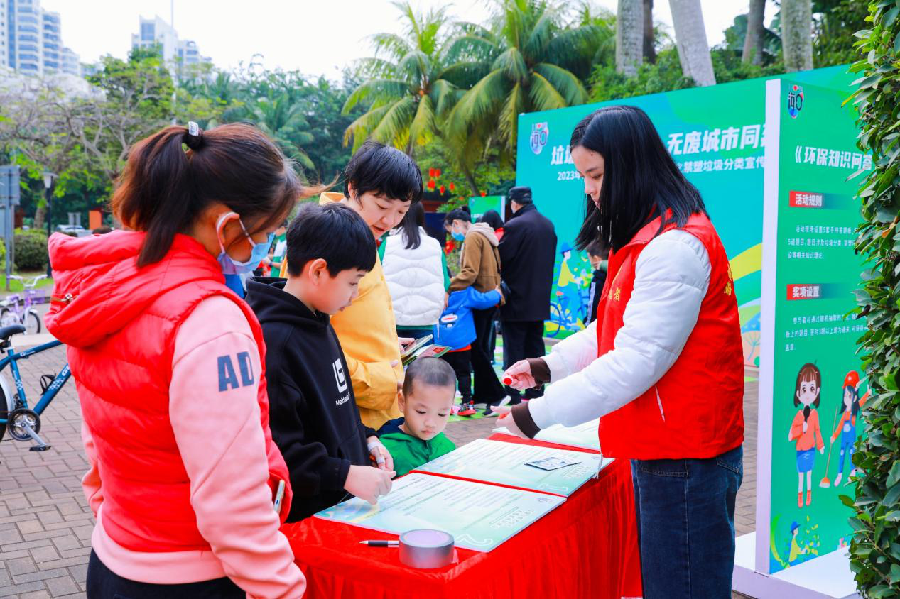 活动还以“垃圾分类齐参与,无废城市同建设”为主题,设置有“环保知识趣问答”、“垃圾分类辨一辨”及“垃圾分类闯一闯”三大游戏互动环节,帮助市民游客们在趣味中掌握垃圾分类知识,在互动中提高禁塑环保意识,在参与中了解“无废城市”建设理念。