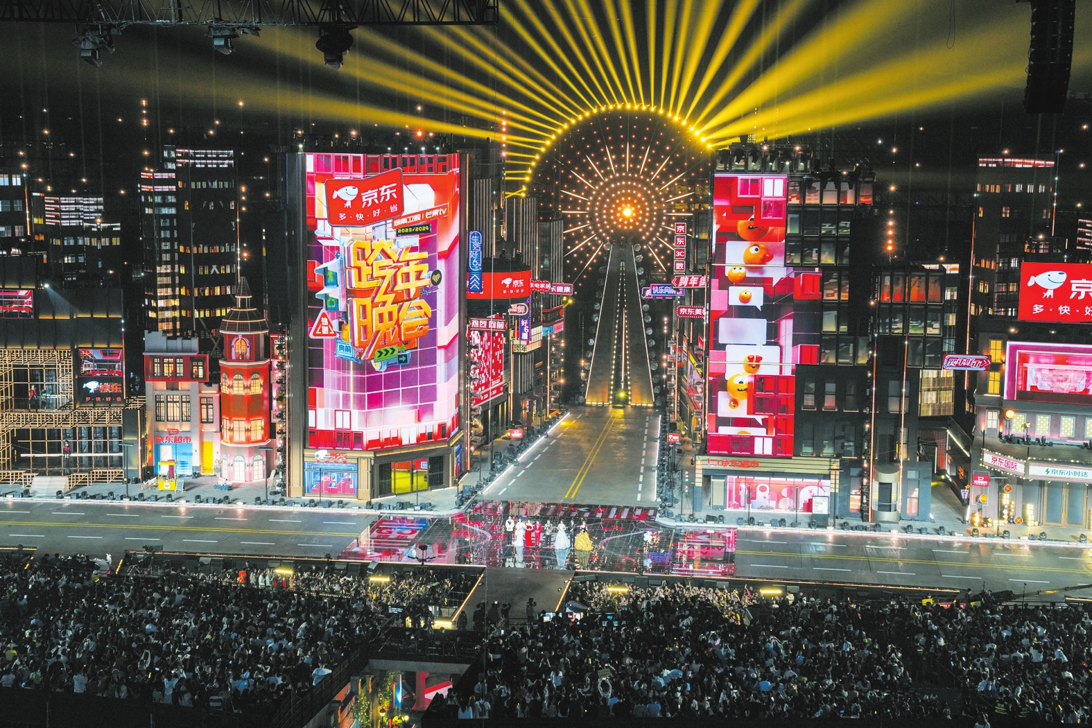明星聚集,精彩表演。在跨年夜里,五源河体育场灯光璀璨,2023—2024湖南卫视芒果TV跨年晚会在这里上演。“跨年街”舞美主视觉让人们仿佛置身于童话之中,彰显城市活力,点燃城市激情。