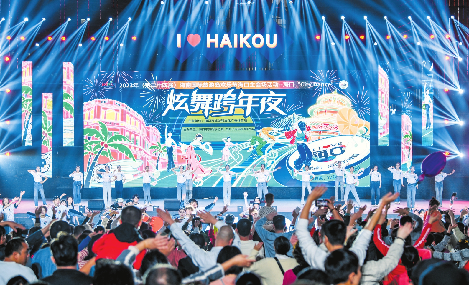 去年12月31日晚,以“欢乐加倍,快乐无限”为主题的欢乐节闭幕式在海口万绿园举行,标志着为期一个月的2023年(第二十四届)海南国际旅游岛欢乐节正式落下帷幕。当天19时许,2023年海口“City Dance”炫舞跨年夜首先亮相,点燃了火热的跨年气氛。