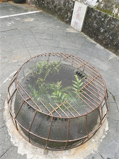在31号民居的前面还有一口“福禄井”,也是一口古井,据说也有上百年历史。此井处于南边低洼处,井挖得较深,底层用石条砌筑井壁,后来周围填土,井壁逐渐增高。水源旺,水质好,主要供南部片区居民使用,现在也已加盖“封存”了。说是“封存”,其实是焊上钢筋和铁网,防止行人尤其是老人小孩不慎落井。