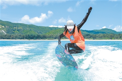 “因为喜欢大海,我来到海南;又因为大海,我接触到冲浪,从此深深爱上了这项运动。”吕润金说,他喜欢站在冲浪板上迎着风前进的感觉,那是一种自由的味道,即便摔下冲浪板也没关系,站起来又可以快乐出发。