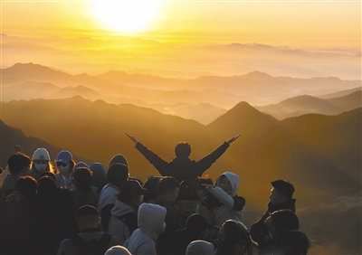 1月1日早晨,游客在乐东尖峰岭看日出。海南日报记者 李天平 摄