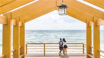 游客在海南环岛旅游公路博鳌段观景台看海。 海南日报记者 张茂 摄