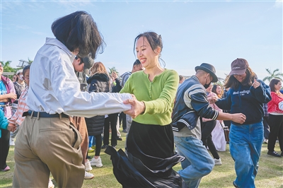 2023年12月24日,市民在海口湾畔的草地上跳爵士舞。海南日报记者 封烁 摄