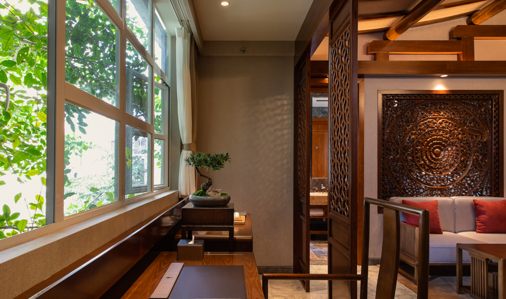 花光竹影投射在窗楣,尽显上醇厚悠远、静谧幽静。
