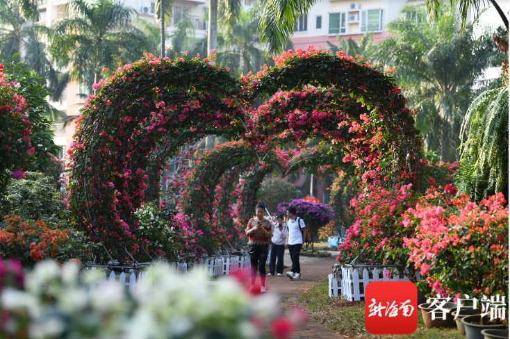 冬日的海口繁花似锦,在街道、公园里,各种花卉争相绽放,一片姹紫嫣红。