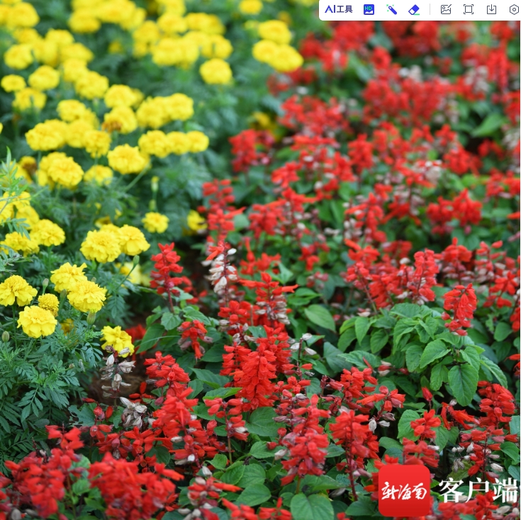 香叶万寿菊与一串红。记者 陈卫东 摄