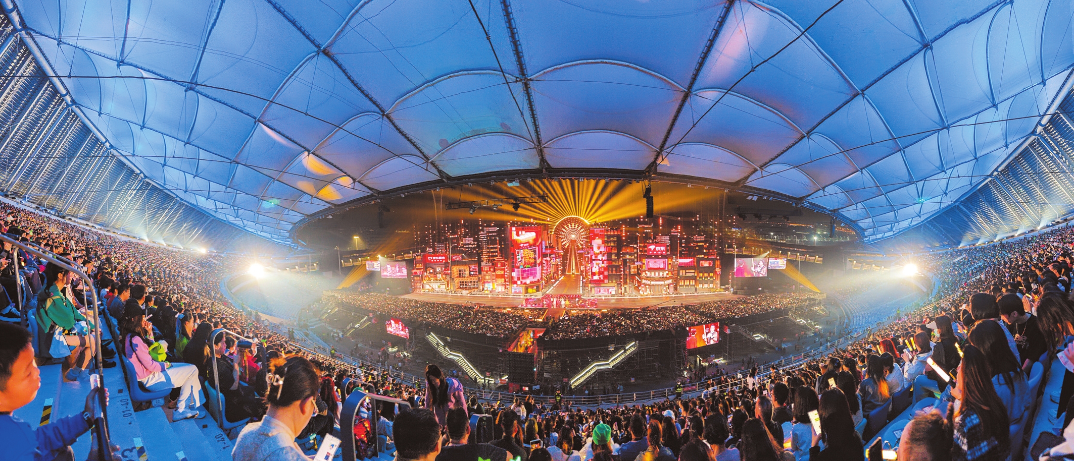 2023年12月31日,湖南卫视芒果TV跨年晚会在海口五源河体育场举办。记者 杨鹤 摄